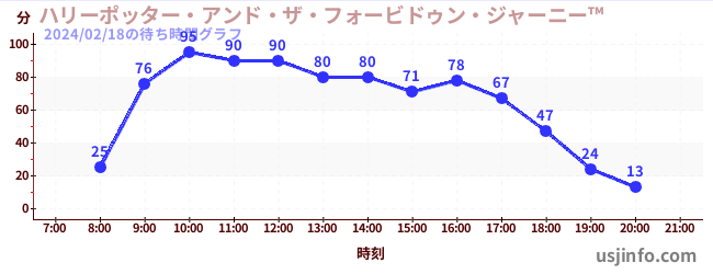 • ハリーポッター・アンド・ザ・フォービドゥン・ジャーニー™$B$N(B2024年02月18日の待ち時間
