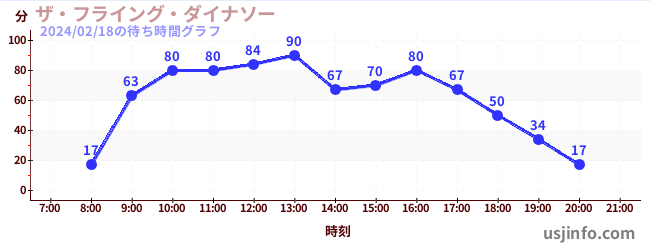 • ザ・フライング・ダイナソー$B$N(B2024年02月18日の待ち時間