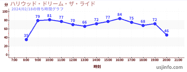 • ハリウッド・ドリーム・ザ・ライド$B$N(B2024年02月18日の待ち時間