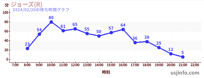 • ジョーズ(R)$B$N(B2024年02月20日の待ち時間