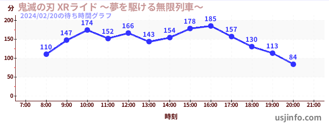 • 鬼滅の刃 XRライド$B$N(B2024年02月20日の待ち時間