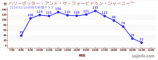 • ハリーポッター・アンド・ザ・フォービドゥン・ジャーニー™$B$N(B2024年02月20日の待ち時間