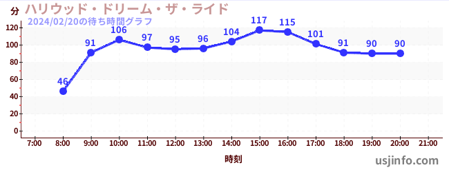• ハリウッド・ドリーム・ザ・ライド$B$N(B2024年02月20日の待ち時間