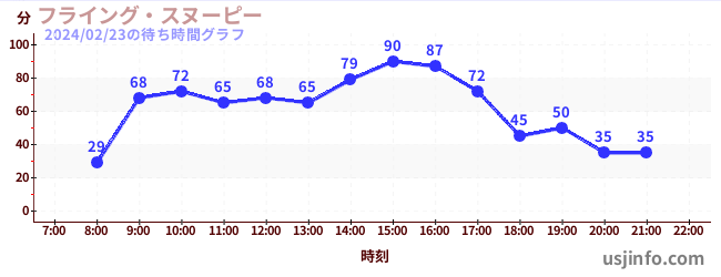 • フライング・スヌーピー$B$N(B2024年02月23日の待ち時間
