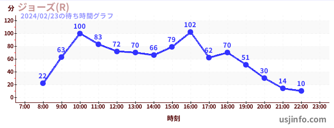 • ジョーズ(R)$B$N(B2024年02月23日の待ち時間