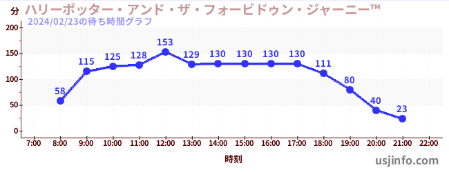 • ハリーポッター・アンド・ザ・フォービドゥン・ジャーニー™$B$N(B2024年02月23日の待ち時間
