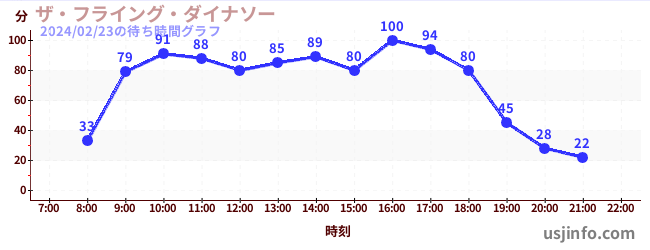 • ザ・フライング・ダイナソー$B$N(B2024年02月23日の待ち時間