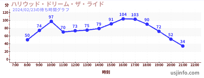 • ハリウッド・ドリーム・ザ・ライド$B$N(B2024年02月23日の待ち時間