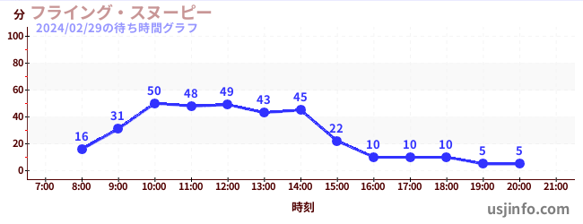 • フライング・スヌーピー$B$N(B2024年02月29日の待ち時間