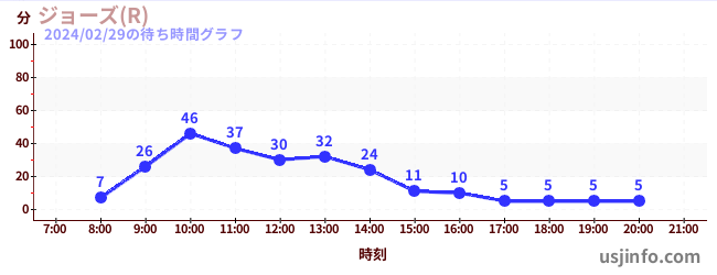 • ジョーズ(R)$B$N(B2024年02月29日の待ち時間