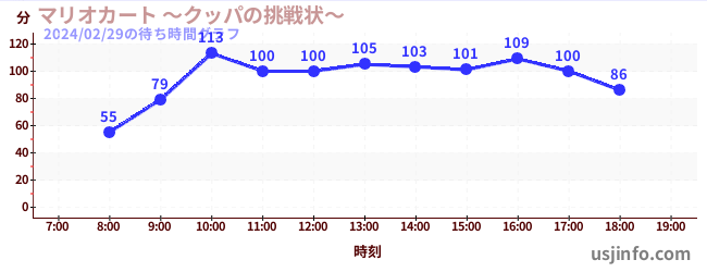 • マリオカート ~クッパの挑戦状~$B$N(B2024年02月29日の待ち時間