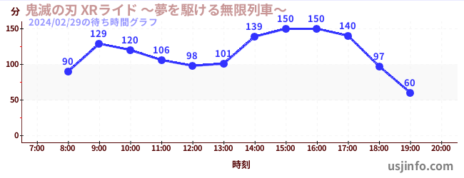 • 鬼滅の刃 XRライド$B$N(B2024年02月29日の待ち時間