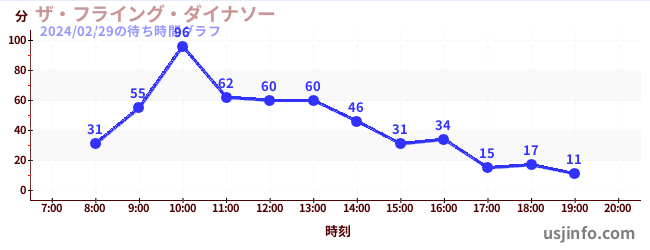 • ザ・フライング・ダイナソー$B$N(B2024年02月29日の待ち時間