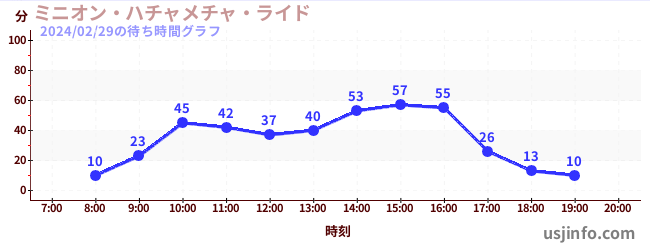 • ミニオン・ハチャメチャ・ライド$B$N(B2024年02月29日の待ち時間