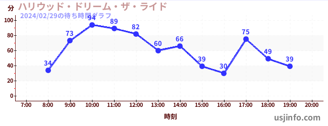 • ハリウッド・ドリーム・ザ・ライド$B$N(B2024年02月29日の待ち時間