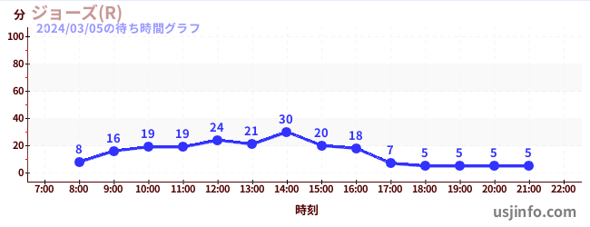 • ジョーズ(R)$B$N(B2024年03月05日の待ち時間