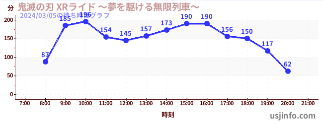• 鬼滅の刃 XRライド$B$N(B2024年03月05日の待ち時間