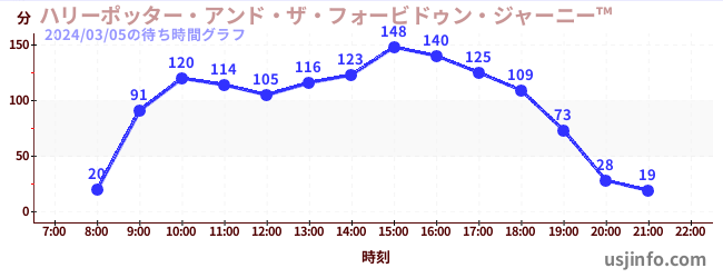 • ハリーポッター・アンド・ザ・フォービドゥン・ジャーニー™$B$N(B2024年03月05日の待ち時間