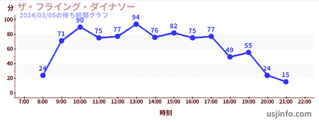 • ザ・フライング・ダイナソー$B$N(B2024年03月05日の待ち時間