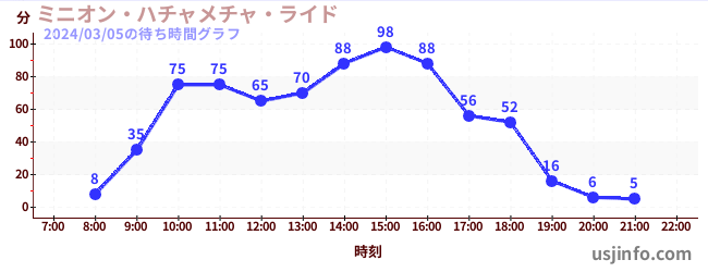 • ミニオン・ハチャメチャ・ライド$B$N(B2024年03月05日の待ち時間