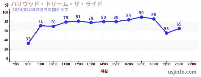 • ハリウッド・ドリーム・ザ・ライド$B$N(B2024年03月05日の待ち時間