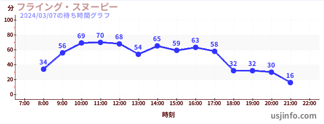 • フライング・スヌーピー$B$N(B2024年03月07日の待ち時間