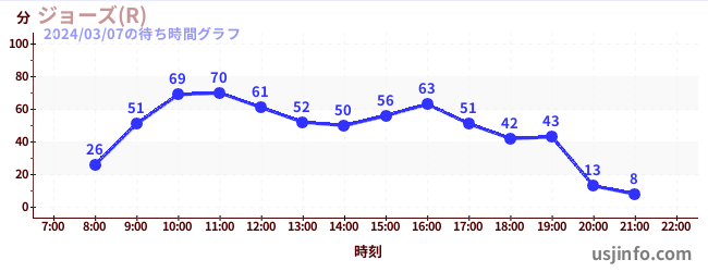 • ジョーズ(R)$B$N(B2024年03月07日の待ち時間