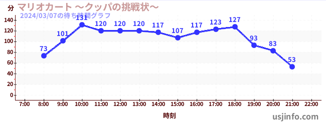 • マリオカート ~クッパの挑戦状~$B$N(B2024年03月07日の待ち時間