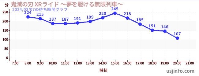• 鬼滅の刃 XRライド$B$N(B2024年03月07日の待ち時間