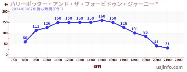 • ハリーポッター・アンド・ザ・フォービドゥン・ジャーニー™$B$N(B2024年03月07日の待ち時間