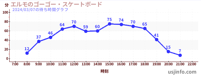 • エルモのゴーゴー・スケートボード$B$N(B2024年03月07日の待ち時間