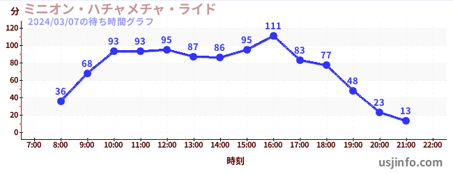• ミニオン・ハチャメチャ・ライド$B$N(B2024年03月07日の待ち時間