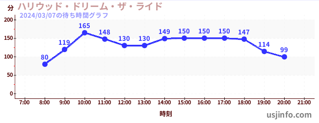• ハリウッド・ドリーム・ザ・ライド$B$N(B2024年03月07日の待ち時間
