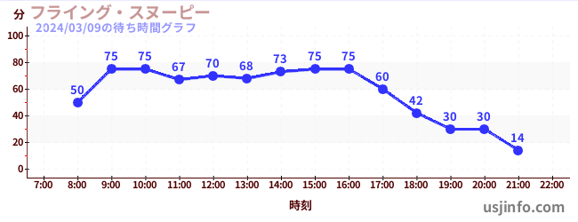 • フライング・スヌーピー$B$N(B2024年03月09日の待ち時間