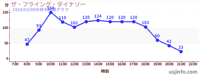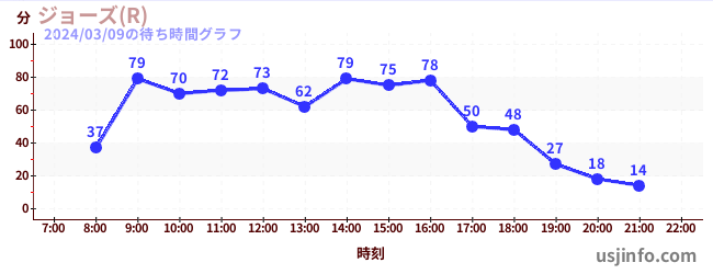 • ジョーズ(R)$B$N(B2024年03月09日の待ち時間