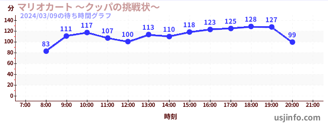• マリオカート ~クッパの挑戦状~$B$N(B2024年03月09日の待ち時間