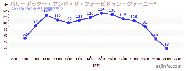 • ハリーポッター・アンド・ザ・フォービドゥン・ジャーニー™$B$N(B2024年03月09日の待ち時間