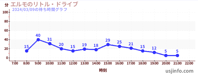• エルモのリトル・ドライブ$B$N(B2024年03月09日の待ち時間