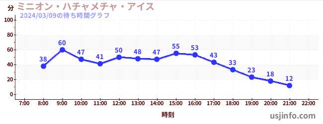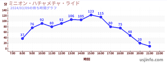 • ミニオン・ハチャメチャ・ライド$B$N(B2024年03月09日の待ち時間