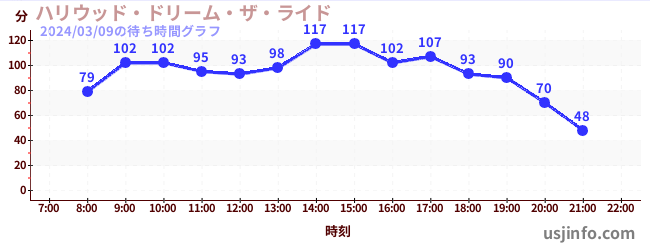 • ハリウッド・ドリーム・ザ・ライド$B$N(B2024年03月09日の待ち時間