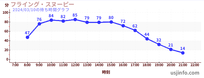 • フライング・スヌーピー$B$N(B2024年03月10日の待ち時間