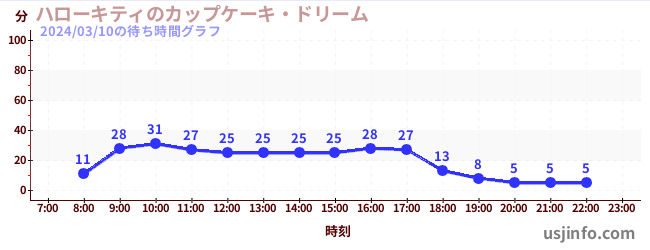 • ハローキティのカップケーキ・ドリーム$B$N(B2024年03月10日の待ち時間