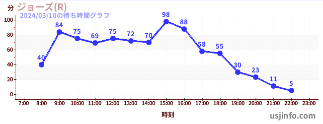 • ジョーズ(R)$B$N(B2024年03月10日の待ち時間