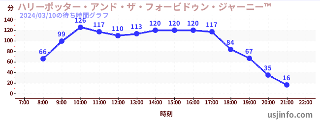 • ハリーポッター・アンド・ザ・フォービドゥン・ジャーニー™$B$N(B2024年03月10日の待ち時間
