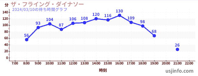 • ザ・フライング・ダイナソー$B$N(B2024年03月10日の待ち時間
