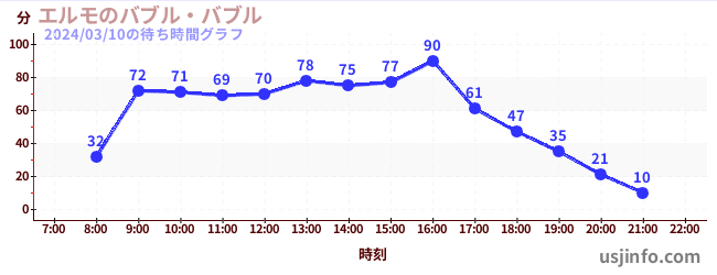 • エルモのバブル・バブル$B$N(B2024年03月10日の待ち時間