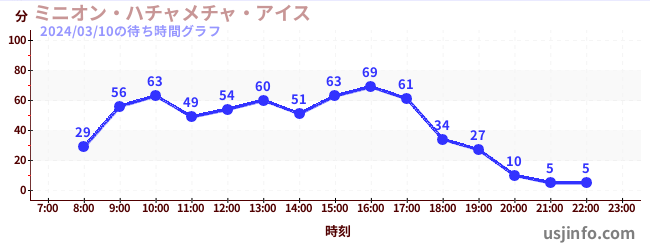 • ミニオン・ハチャメチャ・アイス$B$N(B2024年03月10日の待ち時間