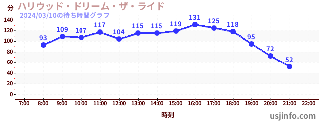 • ハリウッド・ドリーム・ザ・ライド$B$N(B2024年03月10日の待ち時間