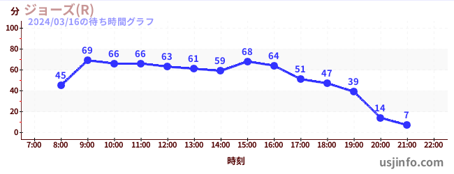 • ジョーズ(R)$B$N(B2024年03月16日の待ち時間