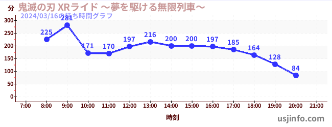 • 鬼滅の刃 XRライド$B$N(B2024年03月16日の待ち時間
